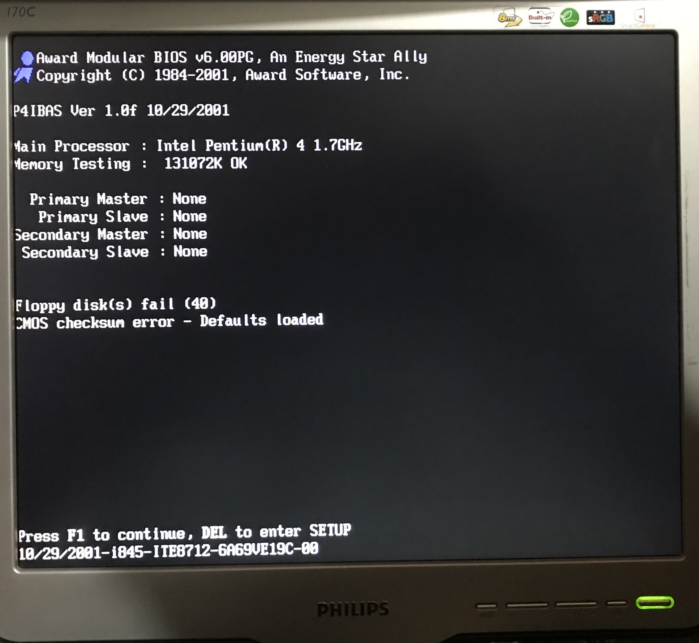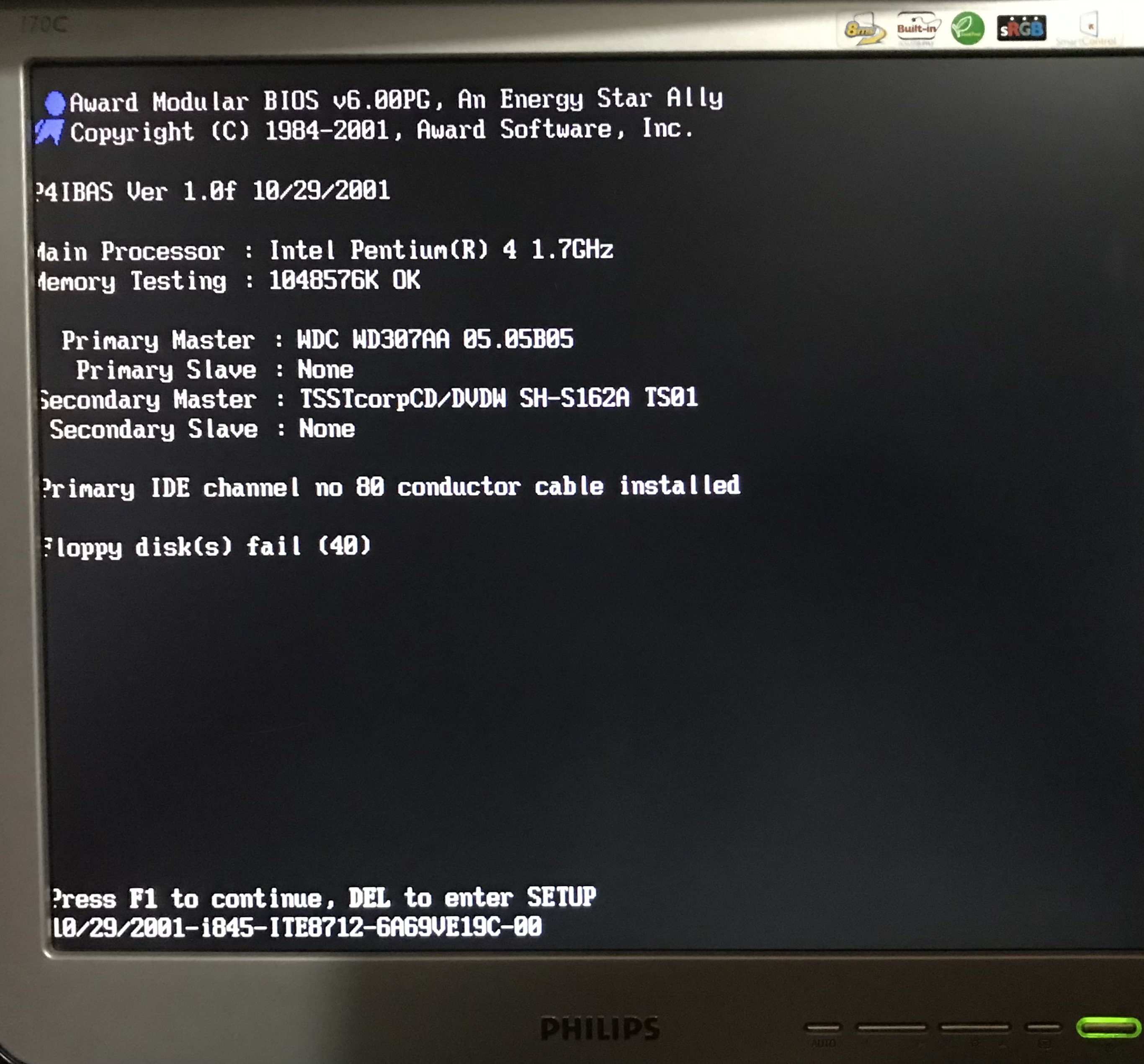 Tornando sul Willy 1700, ho eseguito alcune prove, per prima cosa ? ho preso il cavo da 80 pin dalla MSI MS-7312 o K9MM-V, grazie a questo l’errore segnalato all’avvio nel BIOS, è sparito, rimane quello del floppy non collegato, che potrei eliminarlo, ma mi serve per fermare la schermata di avvio, e poter fare gli scatti necessari.