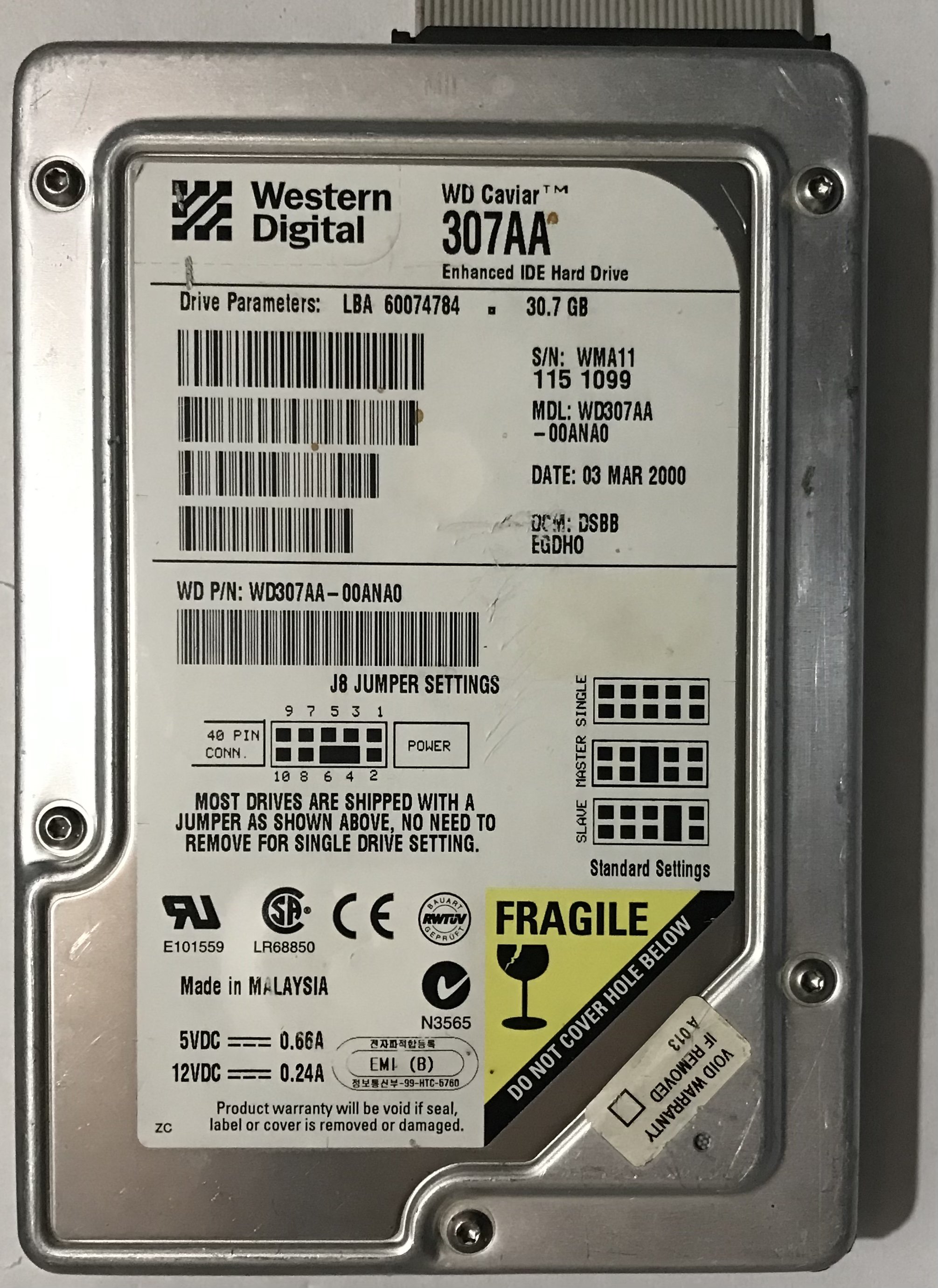 Ho trovato l’unico disco che tenevo da parte per il P3 1000, un WD da 30 GB ??, e lo collego al primario, nel secondario ho un lettore DVD, evito quindi di collegarli sullo stesso cavo, e entrambe dovrebbero essere in Master.