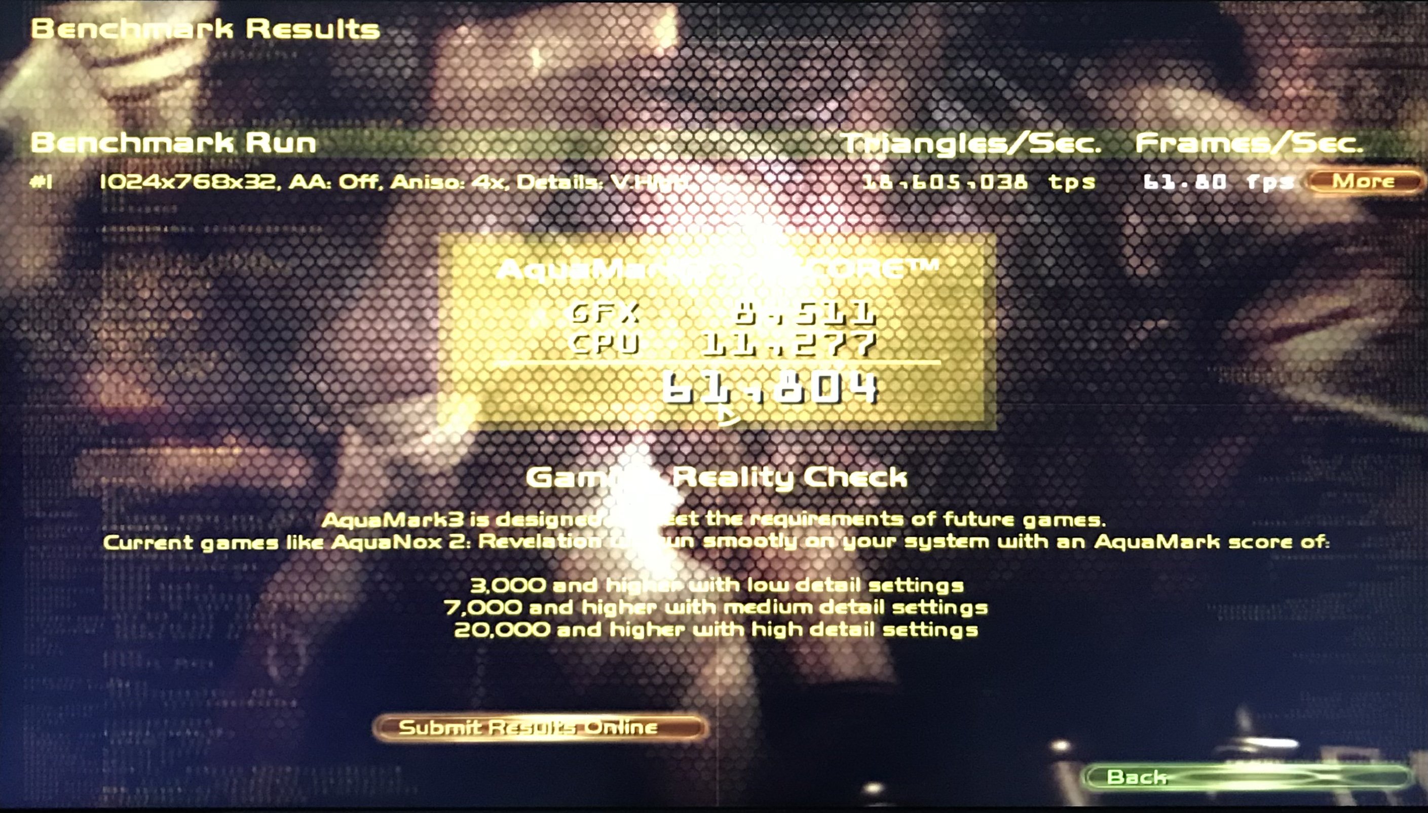 Quello di bench sarebbe AquaMark3, il punteggio finale si può vedere (nell’immagine), credo che sia basso, sia per la CPU non molto veloce, che per la memoria, anch’essa non molto veloce.