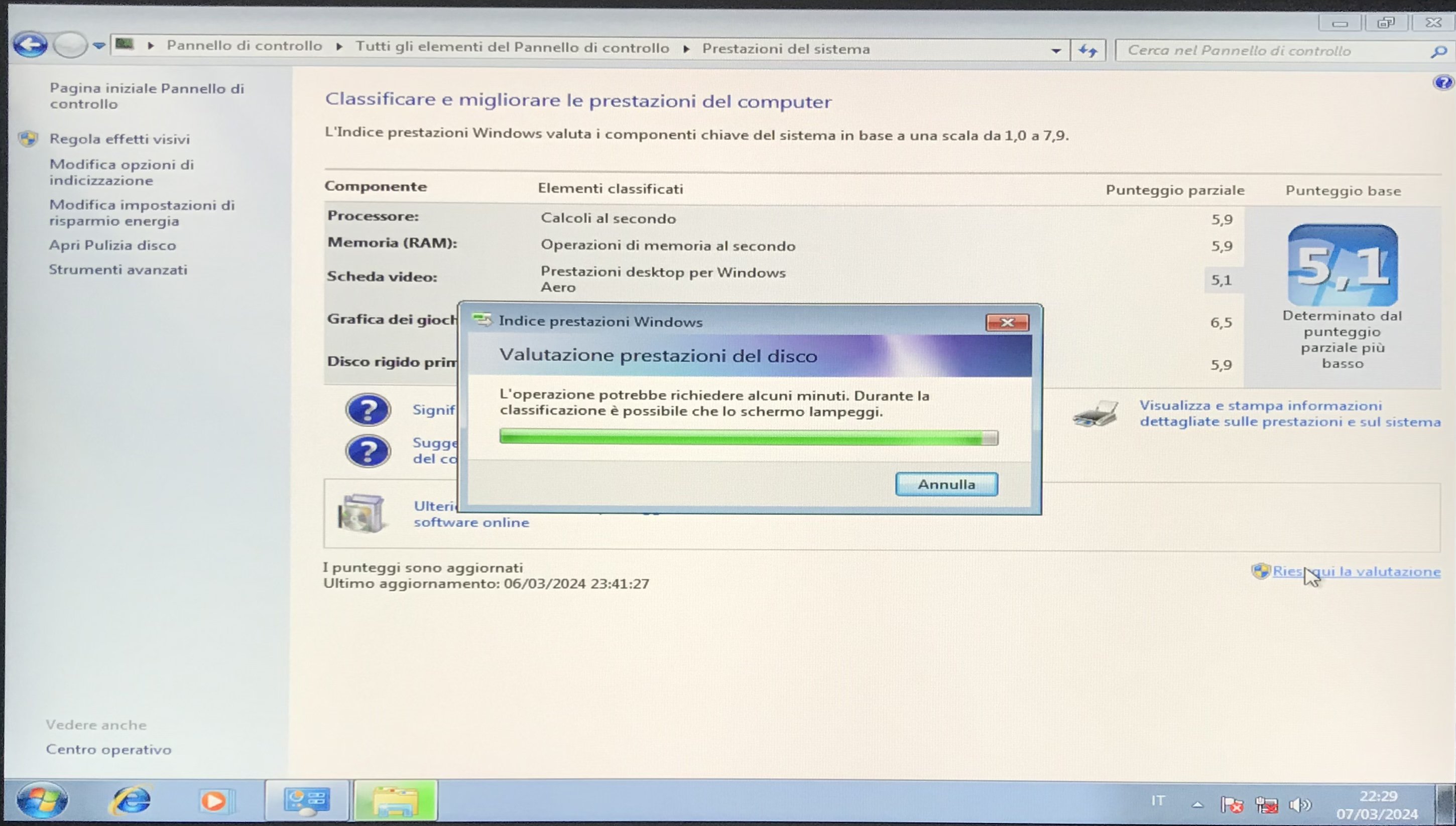 " width="18" /> e nel benchmark integrato di Windows 7 il punteggio è sempre lo stesso di quello trovato qualche anno fa: