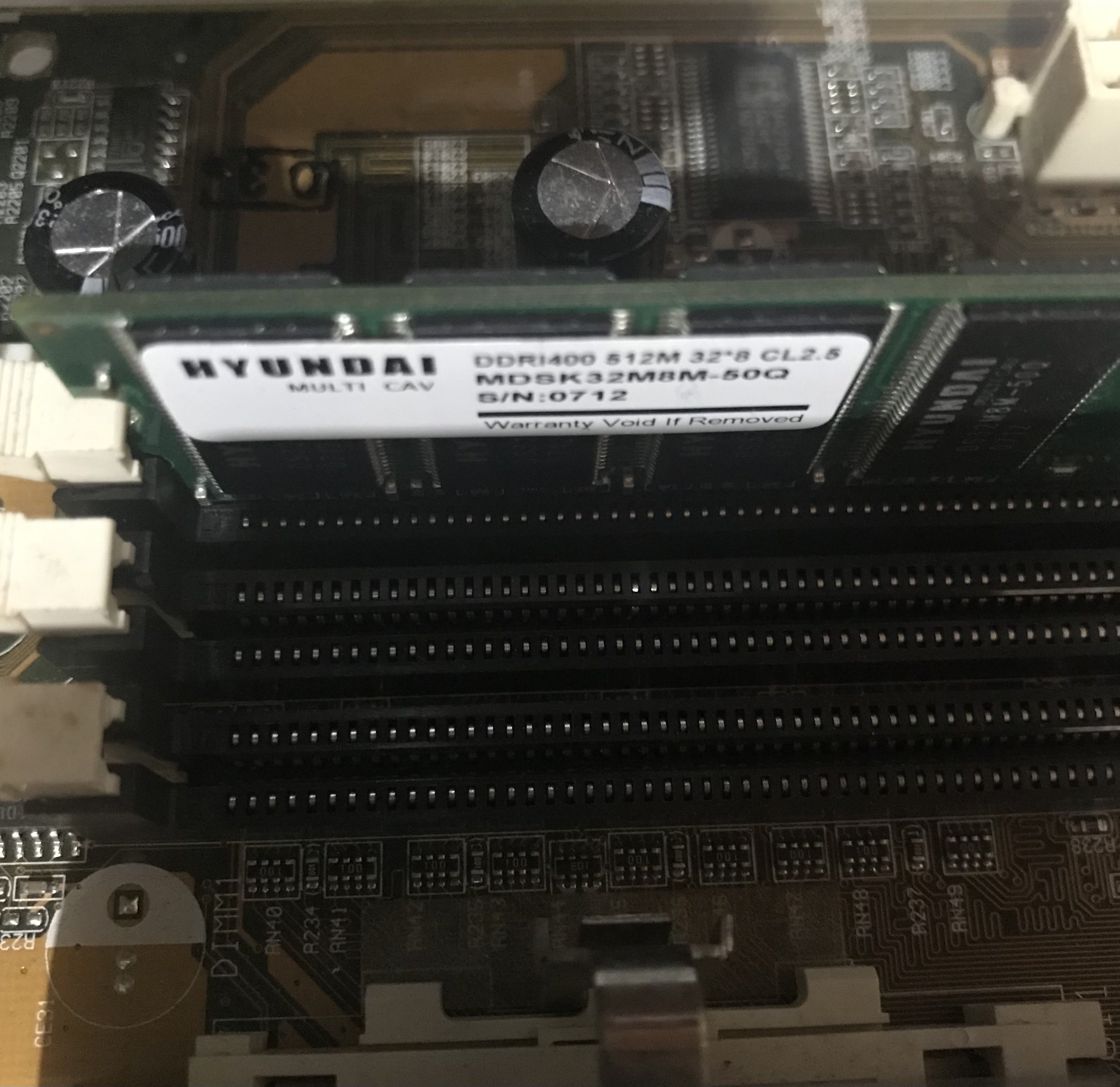 Ho messo un modulo di memoria PC100, esattamente non so di quanti MB è, forse ? 32 MB, se avrò una schermata BIOS all’avvio, potrò aggiungere altri due moduli, per un totale ? di tre totali.