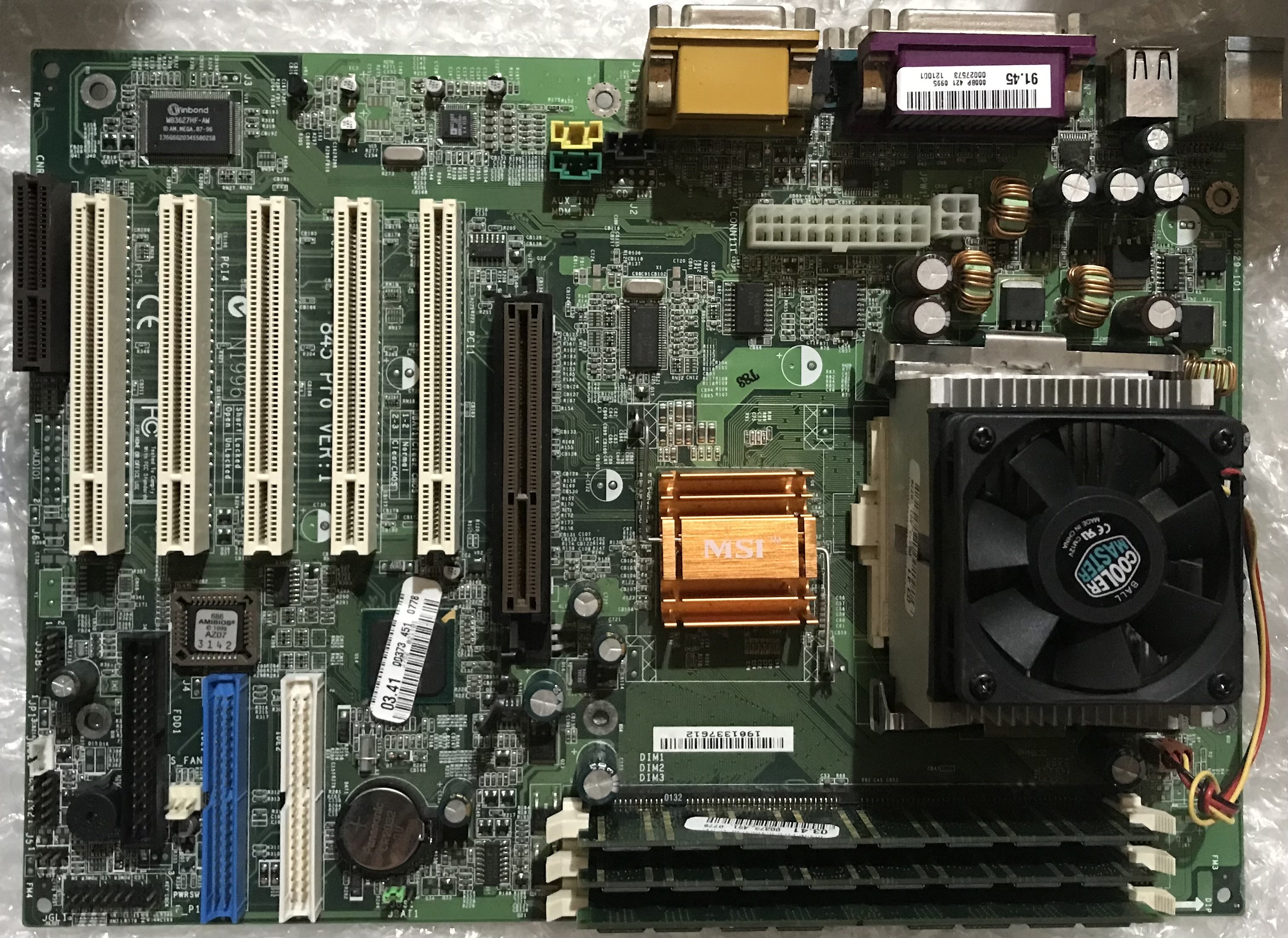 L’altra invece è una scheda con i845 e S.423, una MS-6529, sarebbe la mia seconda 423, ma questa ha le SDRAM, attualmente ne ha tre da 128 MB ciascuna, però dopo aver fatto i test di avvio, passerò a tre da 512 MB, per ottenere in totale ? 1.5 GB ??.
