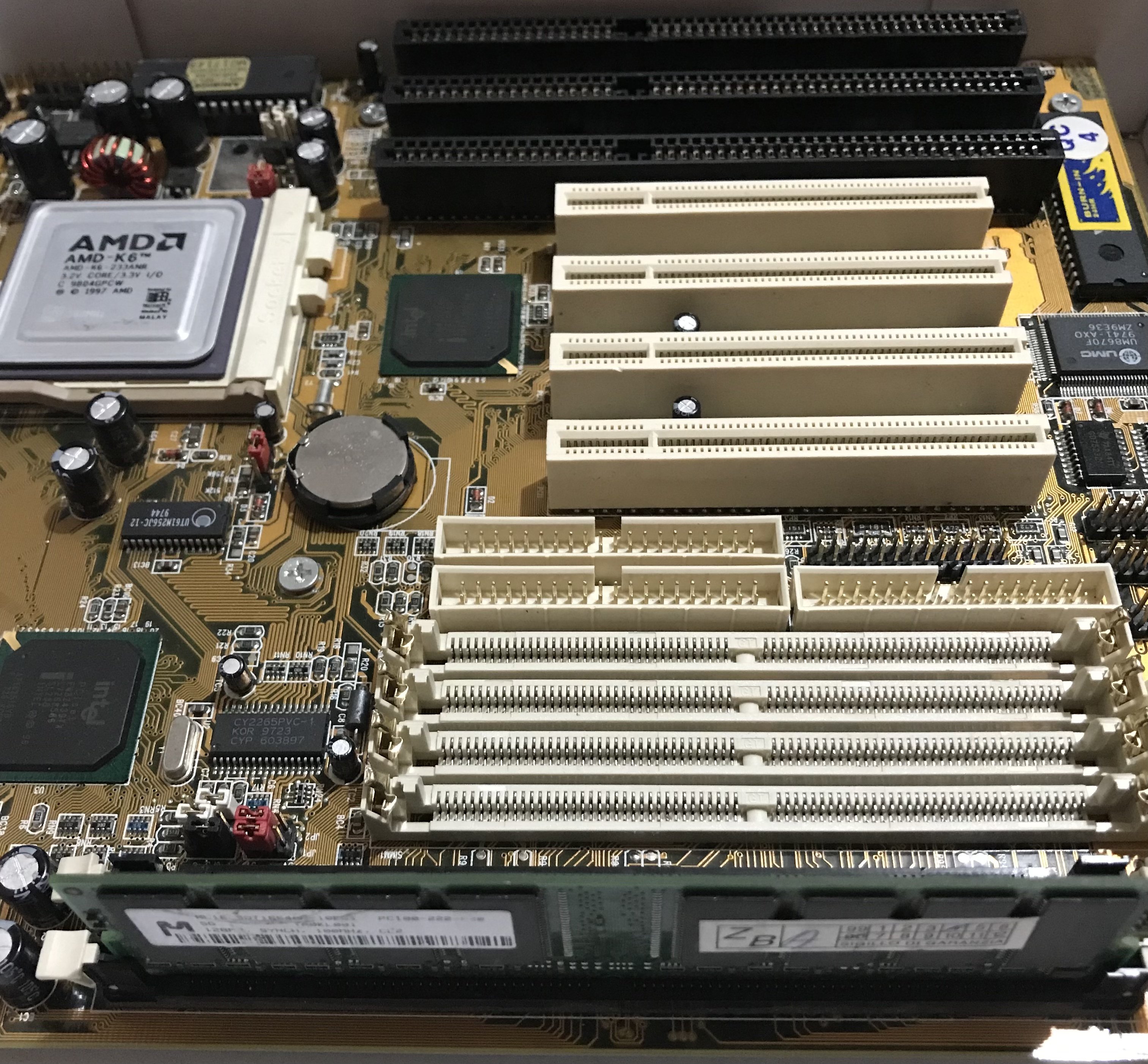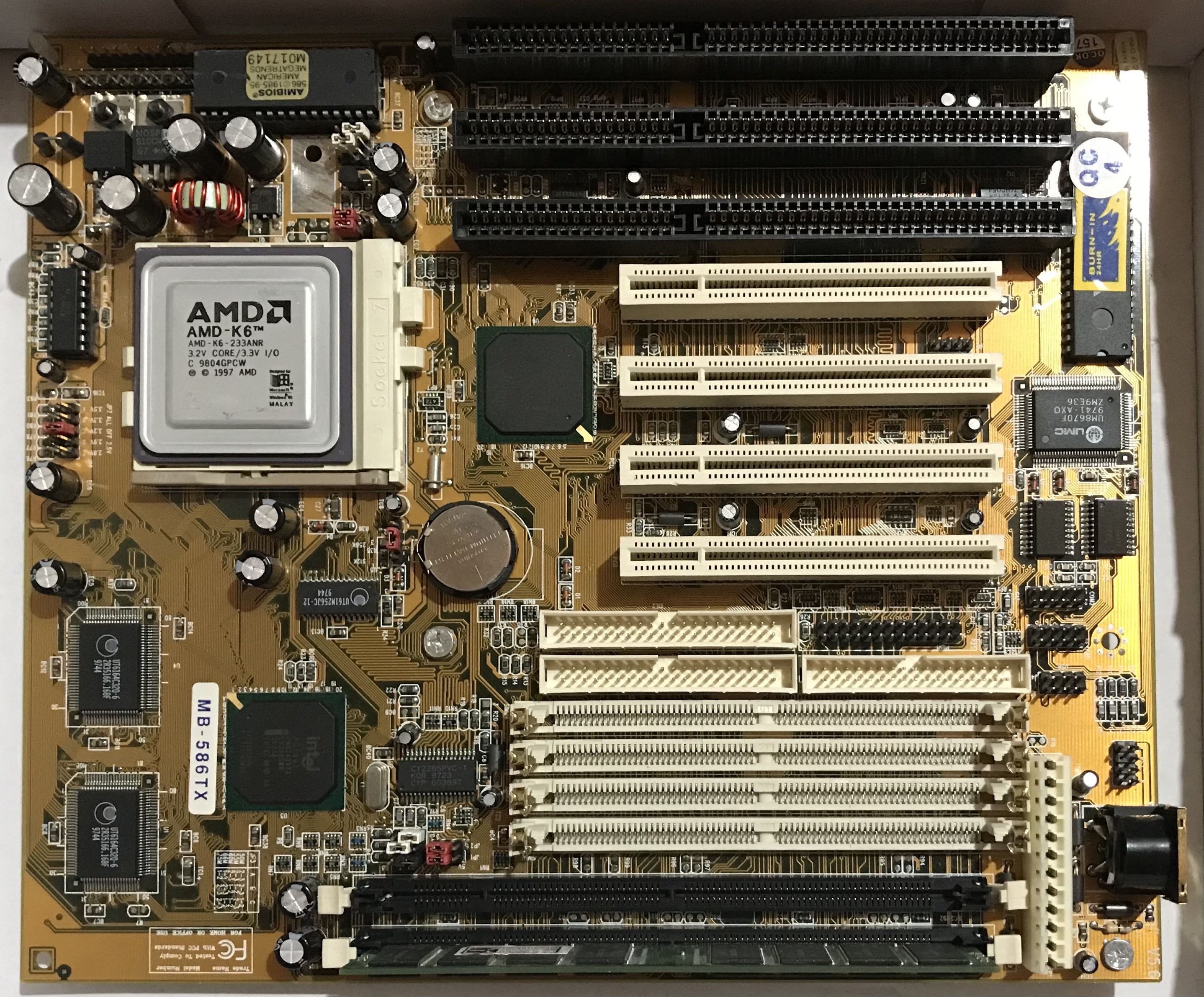 Scusate se non dò continuità alla discussione precedente, ma durante la ricerca ? di alcune MB, con chip BIOS da riprogrammare, è tornata tra le zampe ?, una S7 con AMD K6-233, la scheda ha una etichetta ? MB-586TX, che dovrebbe essere un rimarchiamento, delle schede PCChips, il modello corrispondente dovrebbe essere M550 (o qualcosa di simile), la potrei cercare in seguito, ma potrei soltanto andare a sfogliare il blocco ? degli appunti, in cui avevo annotato anche i problemi riscontrati!