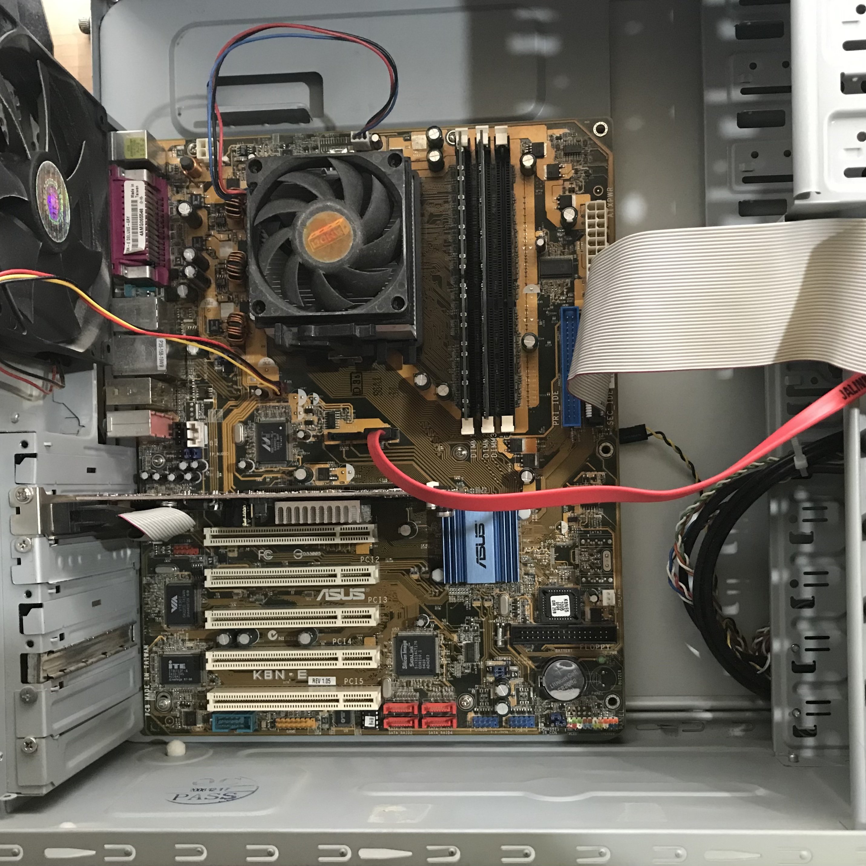 L’altra scheda che occupava, più spazio ? essendo una ATX, è l’ASUS 754, con Sempron 64, modello K8N-E Deluxe, una scheda che inizialmente era molto problematica, al punto ? che avevo quasi rinunciato, e avevo già in mente di metterla nella scatola ? delle MB malfunzionanti, fortunatamente ho eseguito varie prove con RAM differenti, e ho trovato la combinazione perfetta ? per installare Windows, ultimamente non ho avuto il tempo