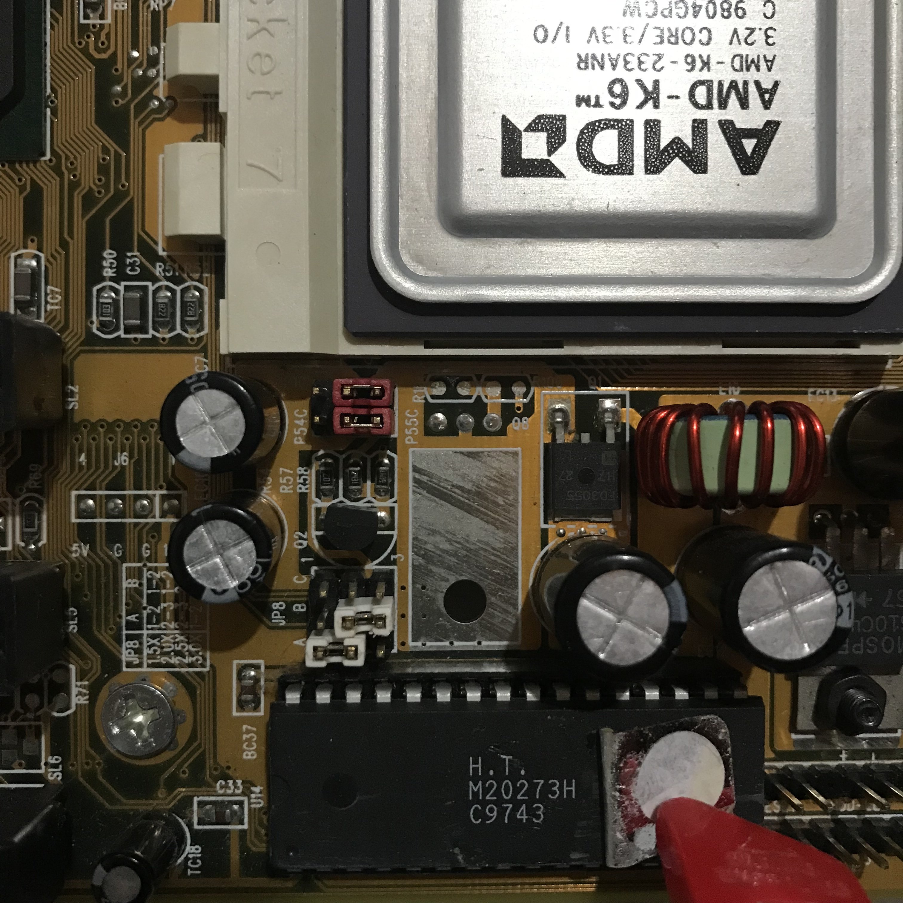 Ho visto il chip BIOS della M550, mi aspettavo un marchio conosciuto, tipico e abbastanza comune, invece è risultato essere un H.T., spero ? che funzioni, e proverò a riprogrammarlo, sperando che tutto torni a posto.