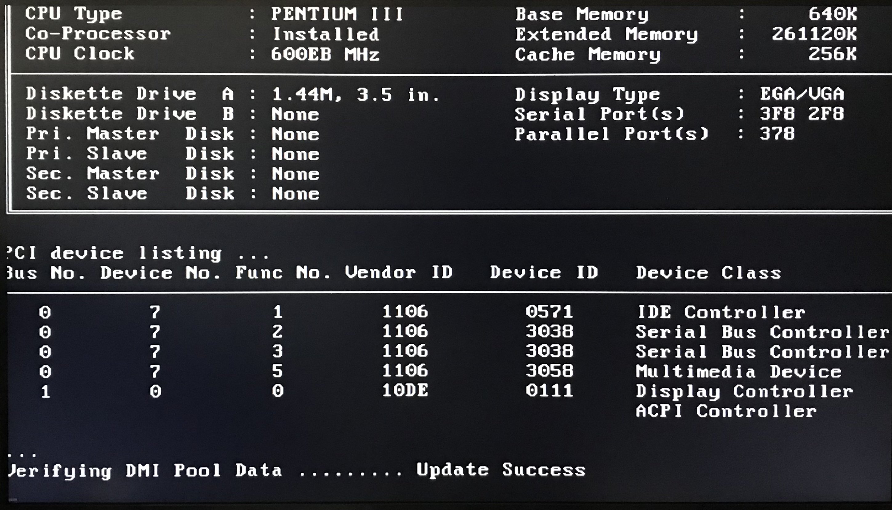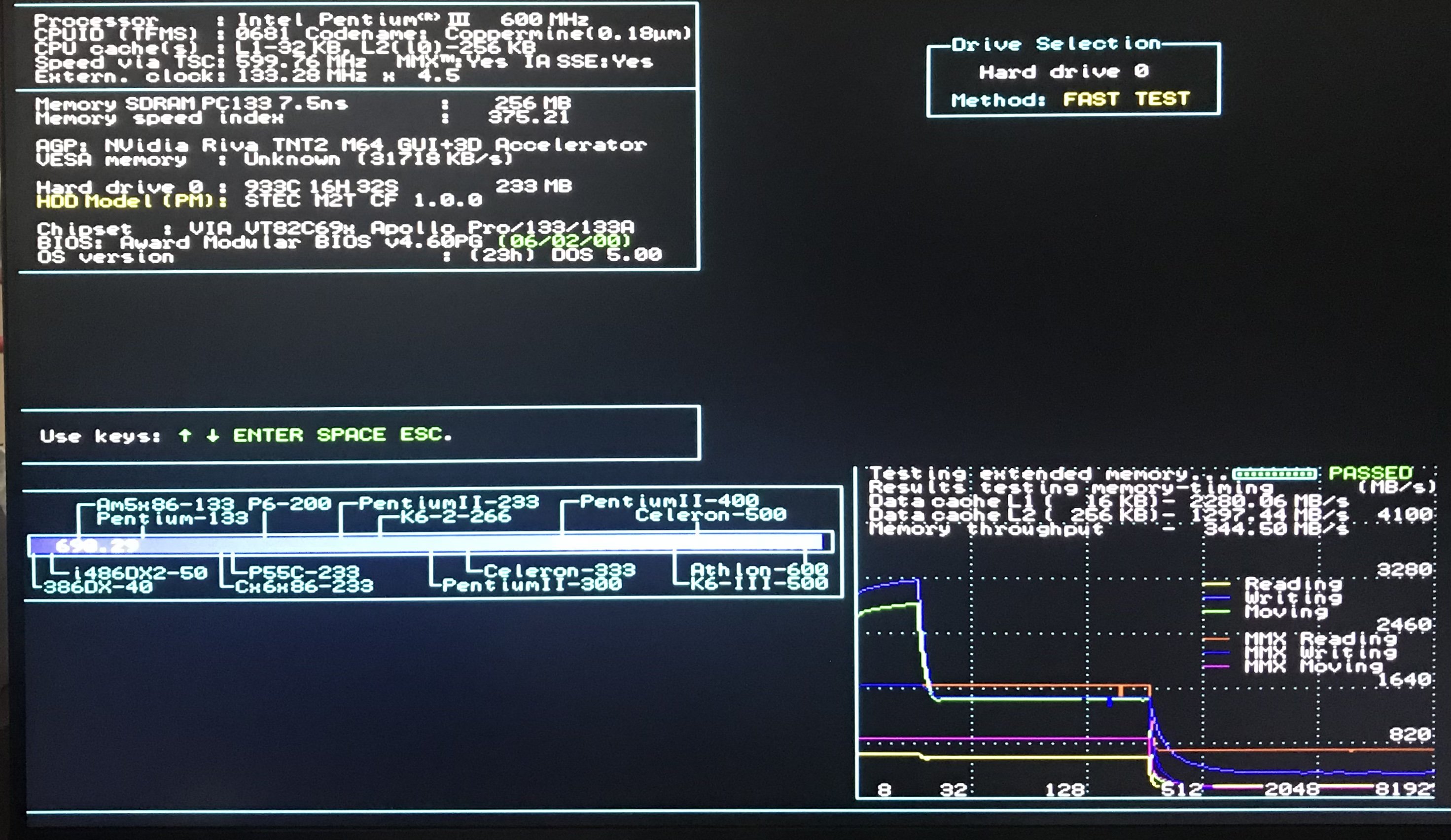 Installata la GF2MX200 AGP, funziona ma noto che da BIOS, c’è una certa lentezza, le righe del menù si vedono apparire lentamente, non so da cosa dipenda, da la sensazione di avere un PC di potenza nettamente inferiore, non so mi sembra un po’ strano, bisognerà fare qualche verifica con programmi diagnostici, a breve dovrei collegare l’adattatore IDE-CF con DOS, vedremo cosa salta fuori.