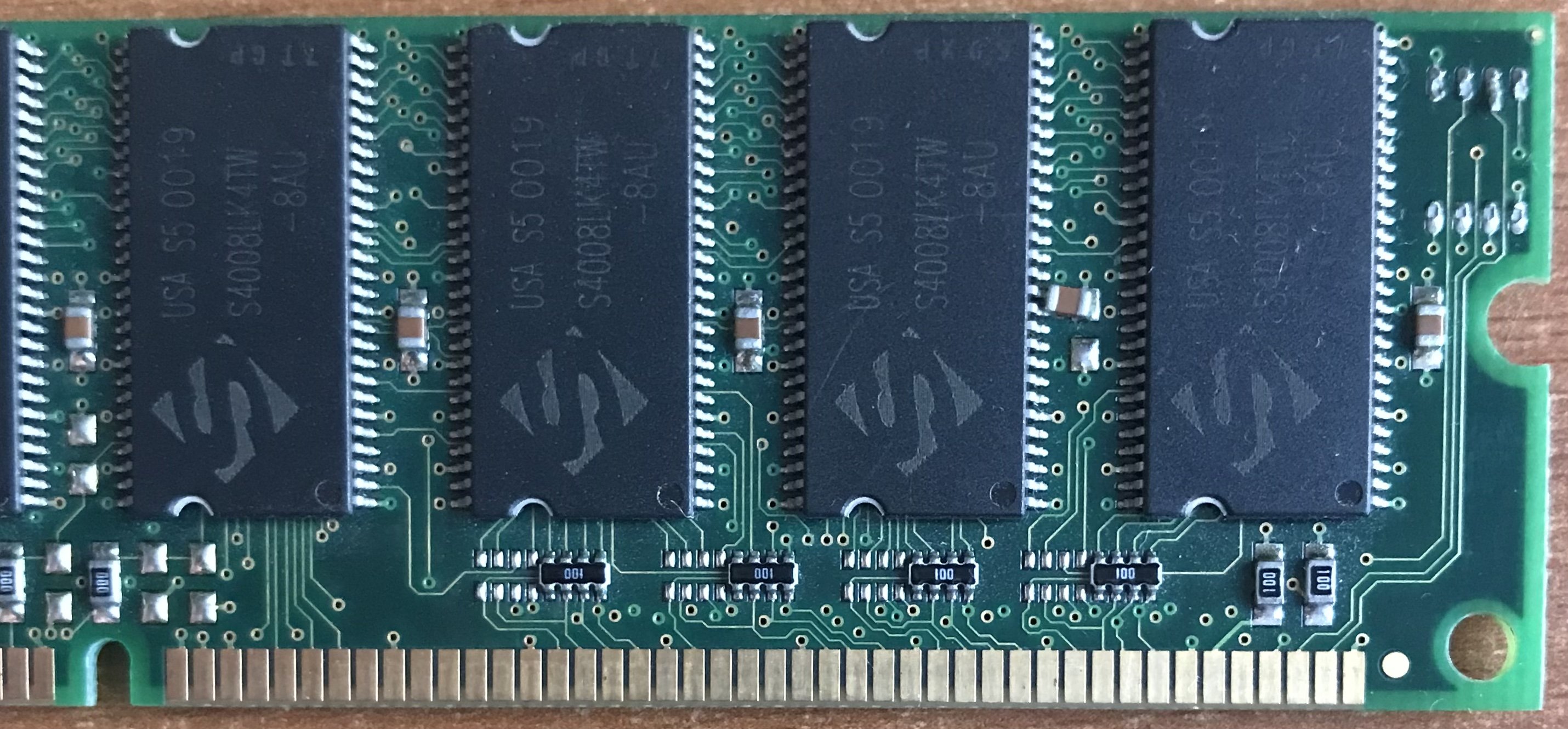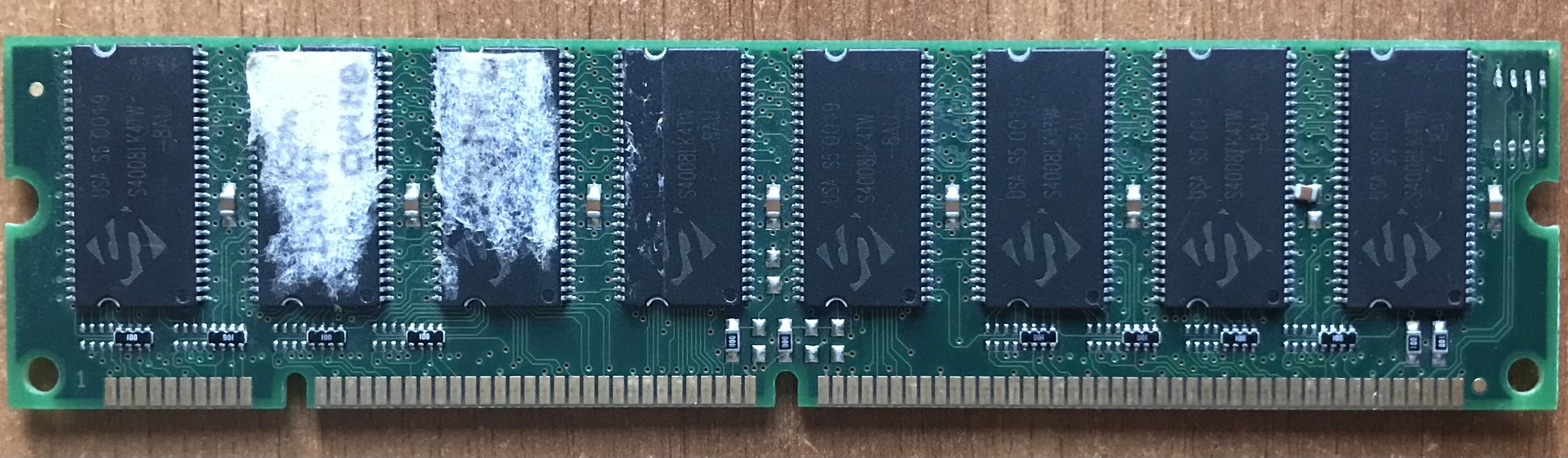 sul banco, un modulo di memoria che difetta, lo usavo anni fa in un QDI con chipset TX, in seguito l’ho tolto perché dava problemi, recentemente osservandolo ho visto un problema, un condensatore SMD è saldato male, è ruotato di 90 gradi e forse ? tocca alcuni pin del chip RAM, insomma va rimesso a posto ?.