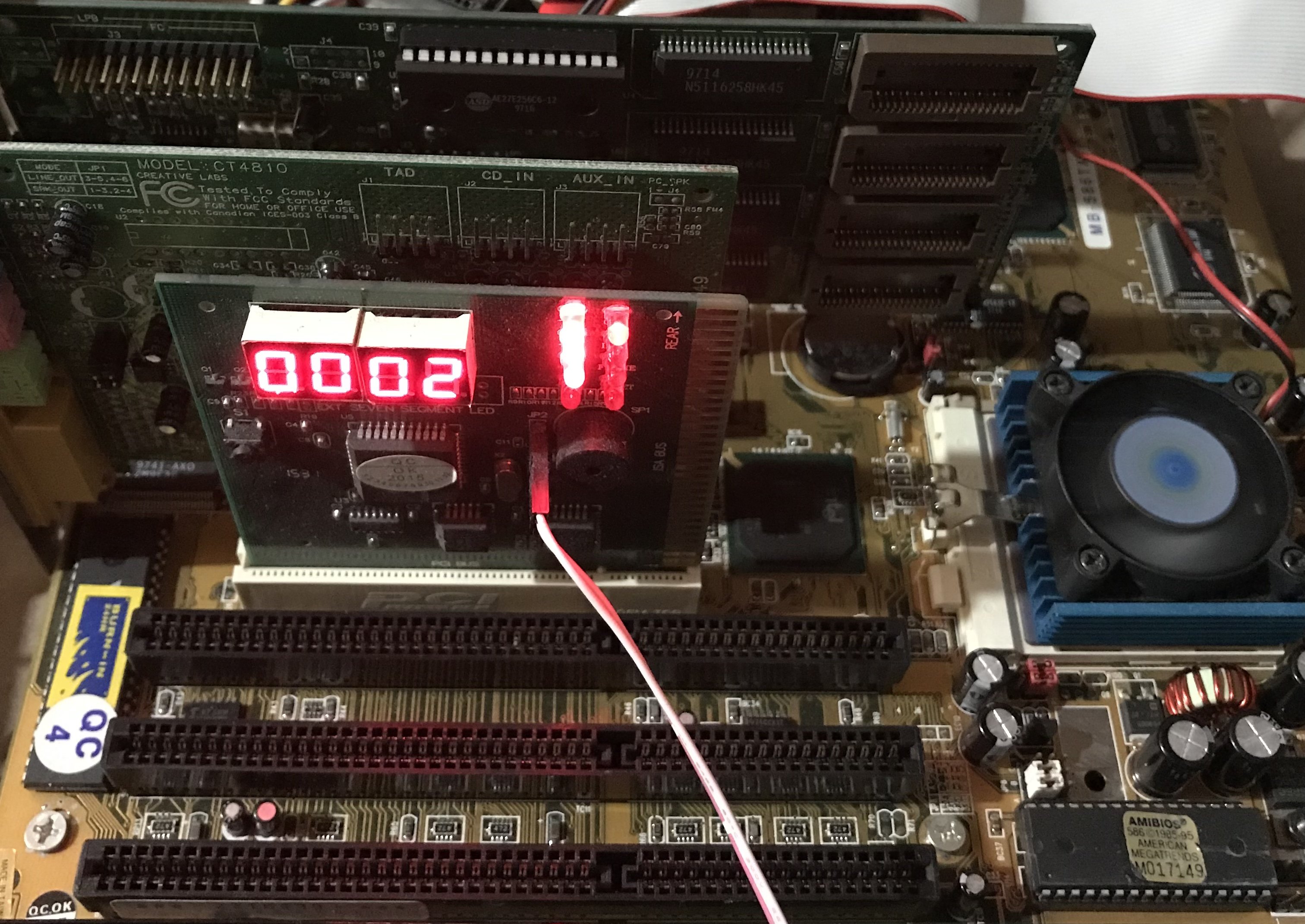 Ci sono dei segni di vita, ma c’è un problema con la VGA PCI ATI Rage XL PCI, purtroppo ? questa scheda non funziona nelle MB più vecchie, perché ha un difetto di fabbrica, non funziona nelle MB con PCI senza il 3.3V, almeno così credo di aver capito, per questo motivo cambio scheda e metto la SIS che uso sui S.7, la prendo in prestito ?, tanto sarà usata solo provvisoriamente.