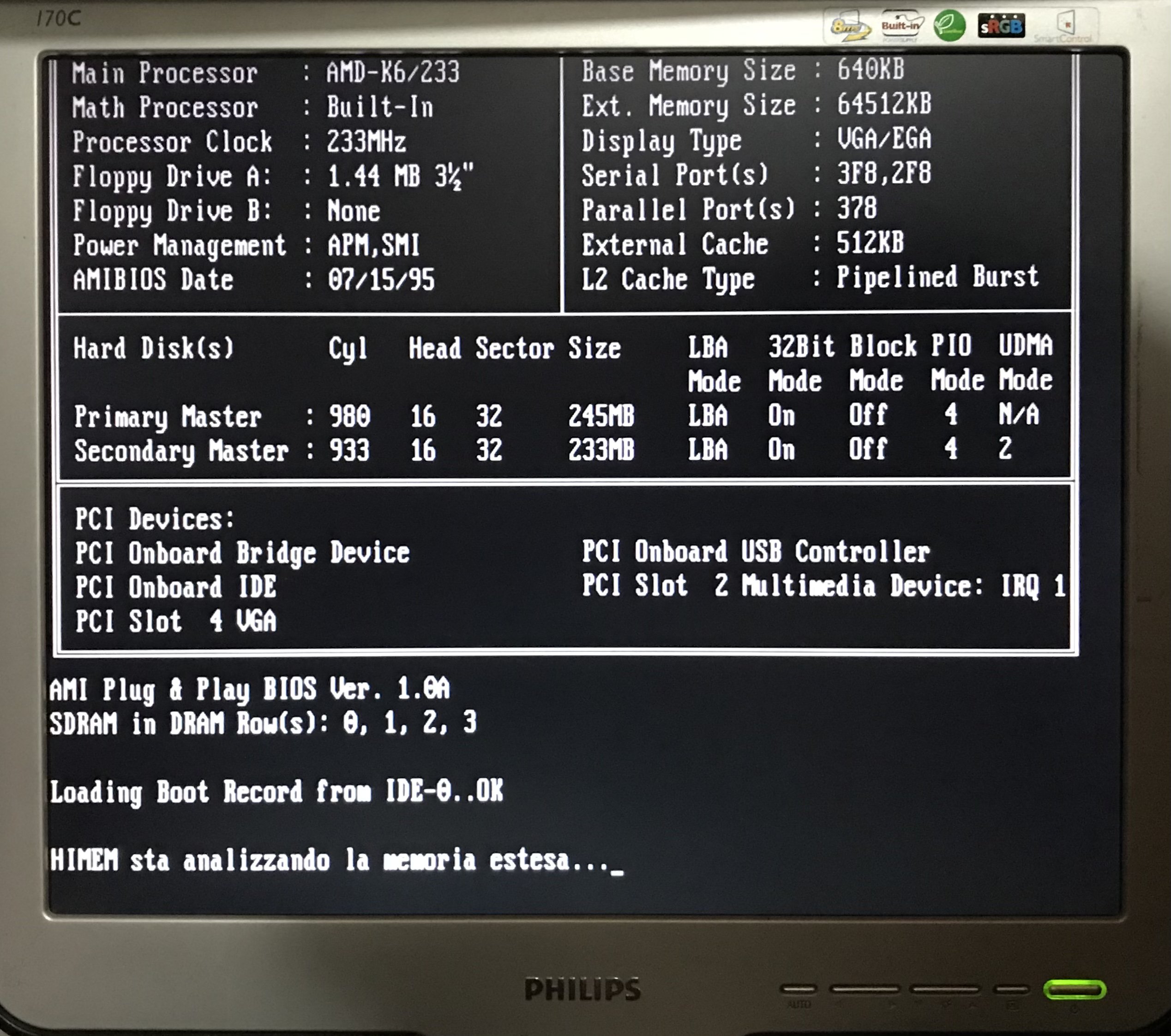 Con la VGA SIS PCI invece, tutto sembra a posto, spostando lo sguardo ? sul monitor, c’è la schermata del BIOS!!!!!!