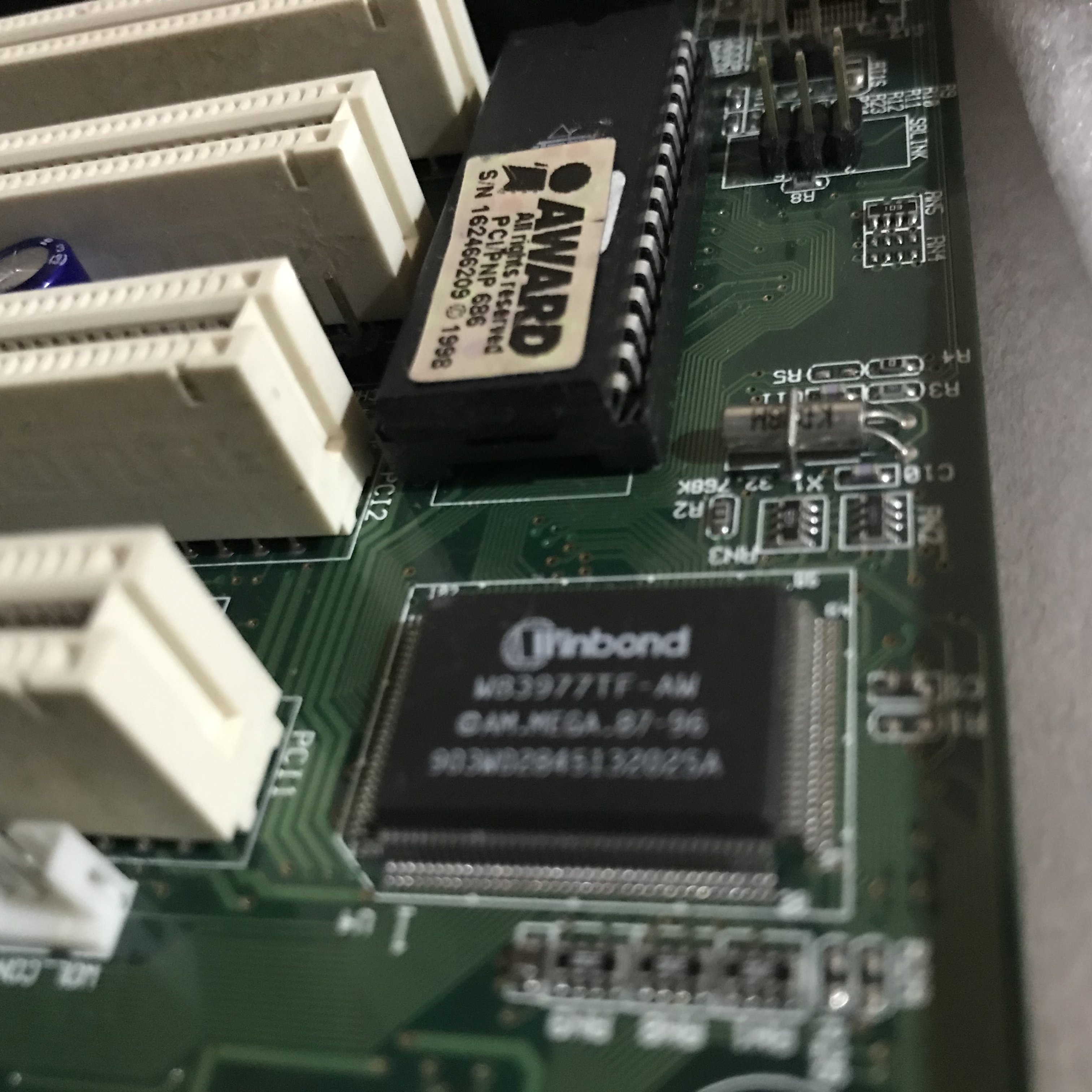 Lavorando sulle due MB Olidata OLI-BX, ho preso nota del tipo di chip BIOS che è presente (in quella funzionante), immagino fosse uguale in quella che non c’è l’ha (?), come sostituto ho un chip Winbond che dovrebbe essere ok, dovrei controllare, ma credo che non ci siano differenze di pin tra il chip ATMEL (originale) e il Winbond (in sostituzione).