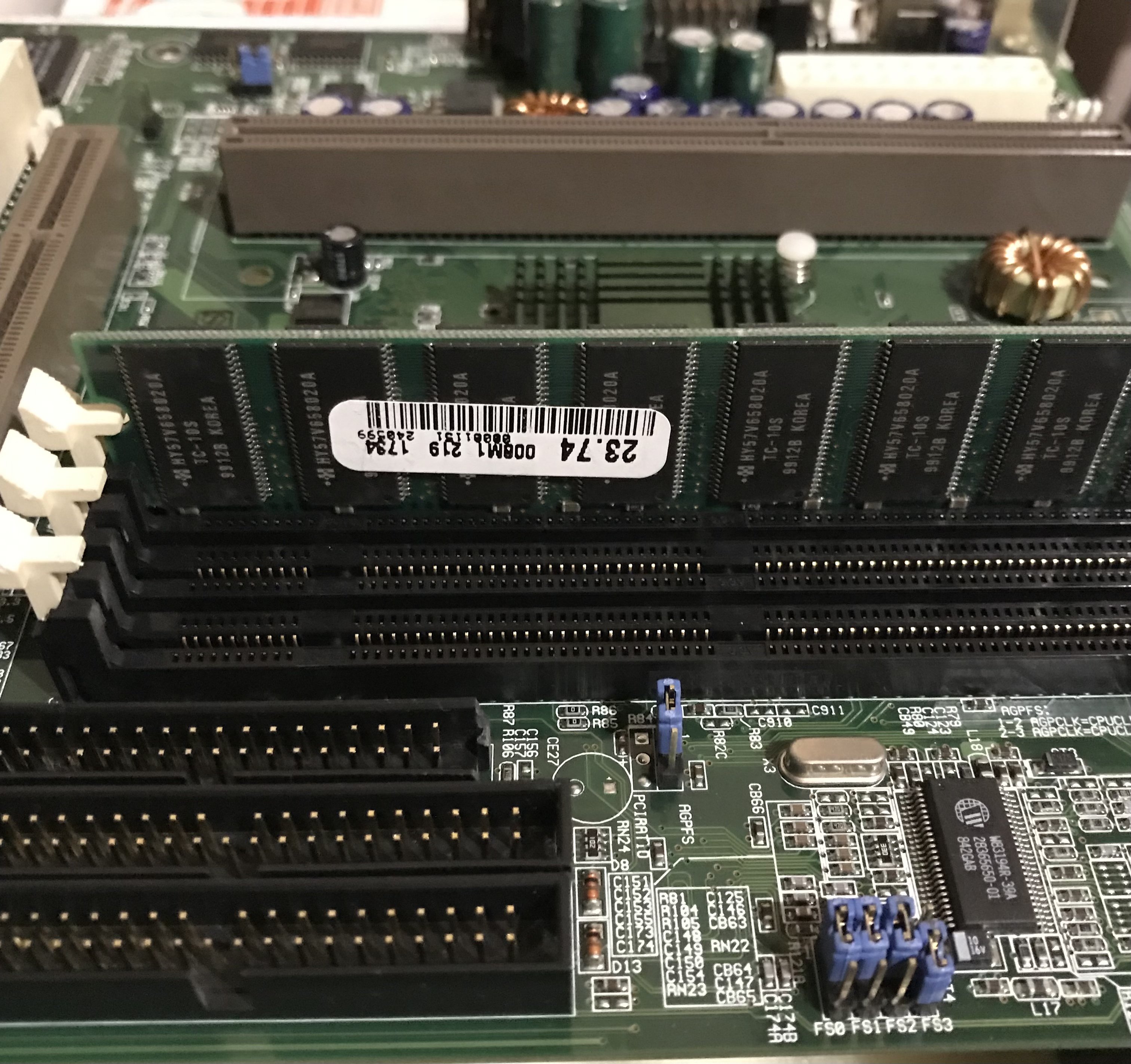 Ho messo una RAM da 64 MB, ma la reale ?? capacità non c’è scritta, potrebbe non essere quella la capacità, in questo momento, non è importante, interessa solo che funzioni, come VGA parto con una ATI Rage XL PCI da 8 MB, che in seguito cambio con una AGP differente, e per finire ho aggiunto una batteria ? CR2032 nuova.