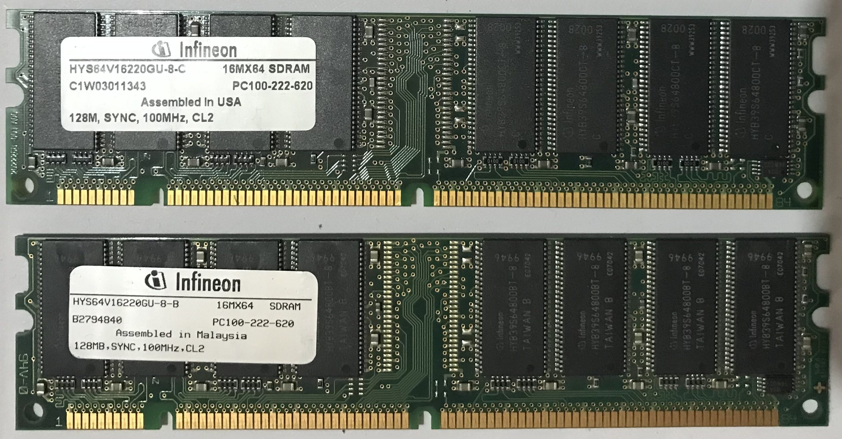 Dato che ormai ? sto lavorando su più schede madri Slot1, ho questa Matsonic MS7070S da provare, avevo già selezionato sia la RAM che la CPU, due banchi CL2 PC100 da 128 MB ciascuno, e un P3-500 Slot1, decido quindi di fare dei controlli preliminari e provare a vedere se si avvia (?).