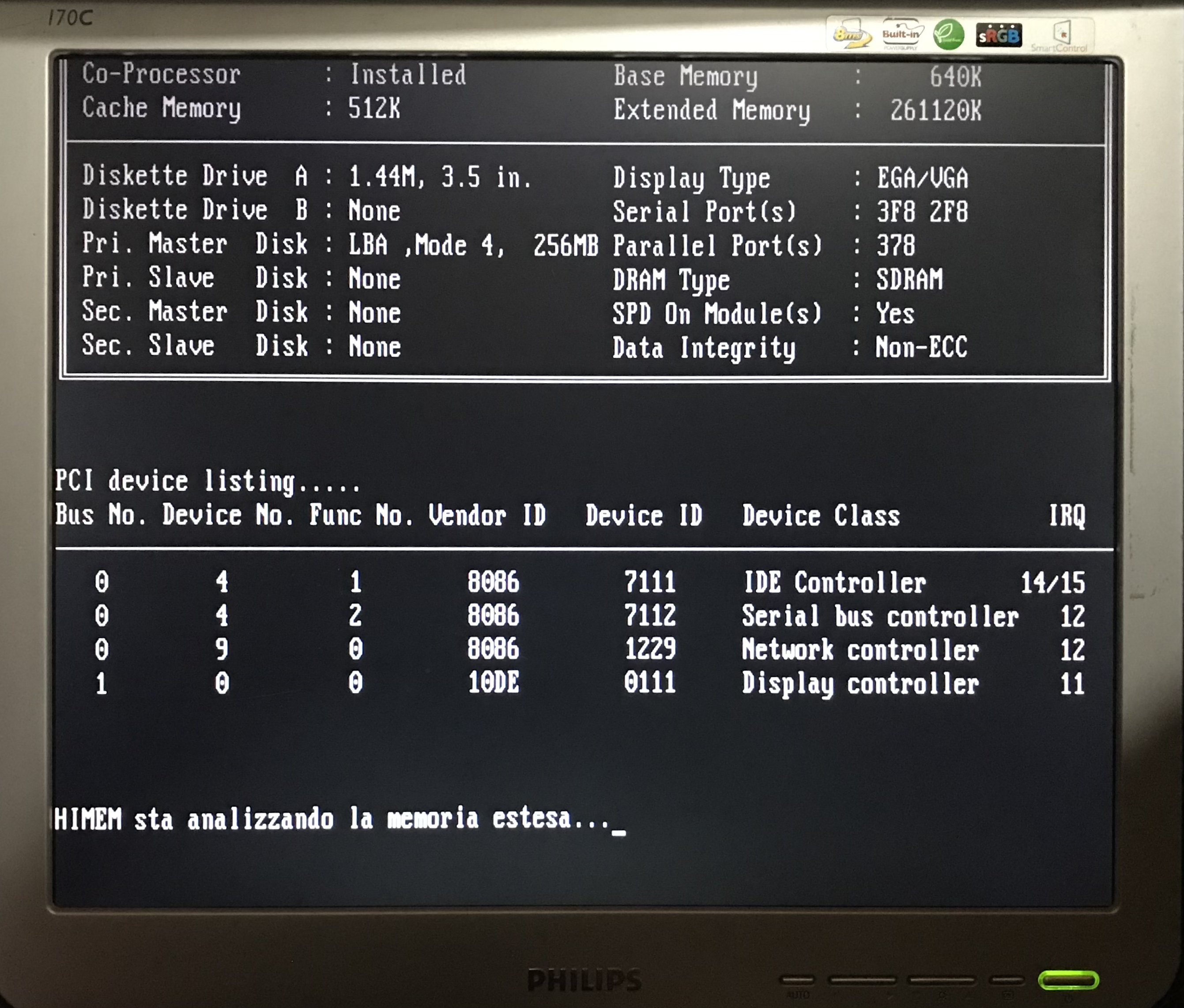 Ultimo aggiornamento HW della scheda madre Olidata OLI-BX, insieme alla scheda audio, c’era una LAN PCI con chip Intel, e piuttosto che tenerla in giro, l’ho messa in uno slot PCI libero, a differenza della scheda audio, all’avvio del PC nelle schermate BIOS, si vedono delle righe con il tipo di scheda, so benissimo che per farla funzionare servono i driver, che devo ancora
