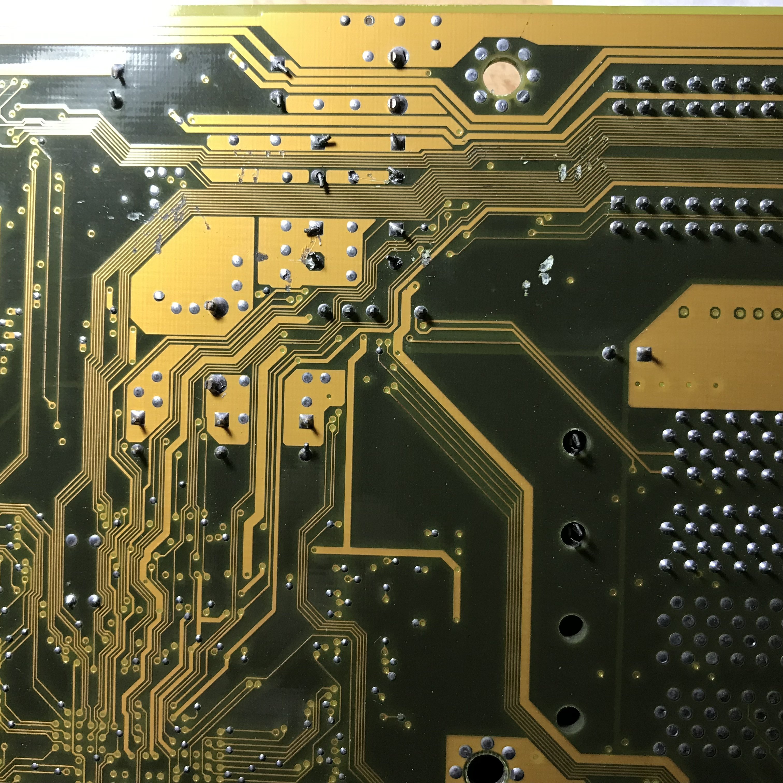 Purtroppo non ho potuto terminare il lavoro, perché due fori sono rimasti occlusi, è una cosa che stranamente succede spesso in schede madri Gigabyte, la parte del positivo deve avere una superficie molto grande, e fa raffreddare in fretta lo stagno fuso, da una parte fonde, dall’altra invece no!