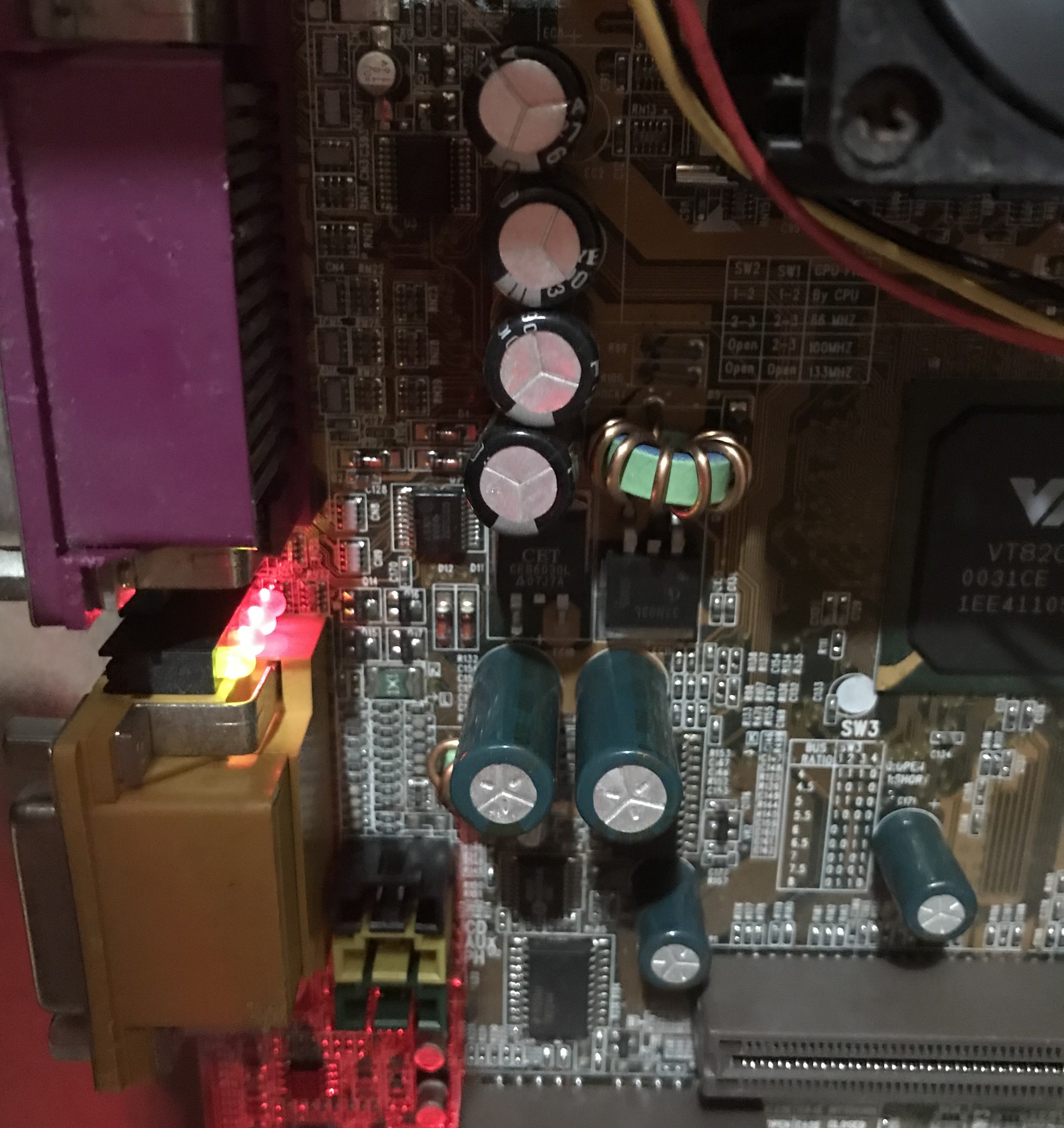 Sin dalle prime prove di avvio, ha manifestato un problema, che era a volte più o meno veloce, ad un certo punto si bloccava, diciamo entro 2-3 minuti al massimo, a volte non faceva in tempo a caricare DOS, altre di fermava alla schermata BIOS, poi ad un certo punto, dopo una dozzina di avvìi (circa), non ha più funzionato e ha smesso di mostrare codici post, credo di averci provato una seconda CPU, al posto del Duron 850 che avevo messo, forse