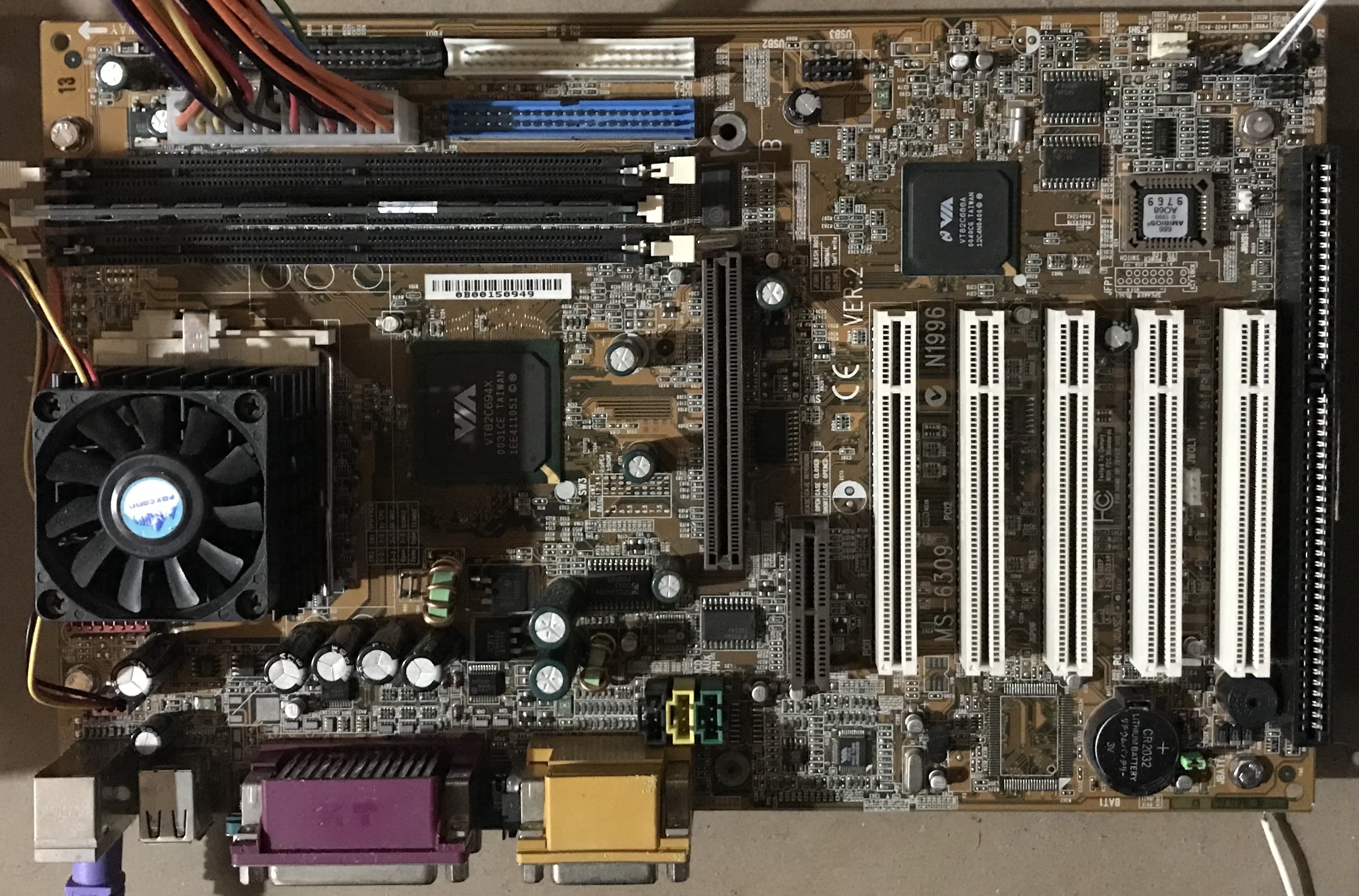 Pensavo che le CPU provate sulla MS6309, potessero essere ormai inservibili, visto il voltaggio oltre i 3V, ma per vedere se siano sopravvissute, mi serviva un’altra Scheda Madre, una che in passato ci ho provato tutte le CPU possibili (persino il VIA C3), e ho fatto alcuni overclock, purtroppo
