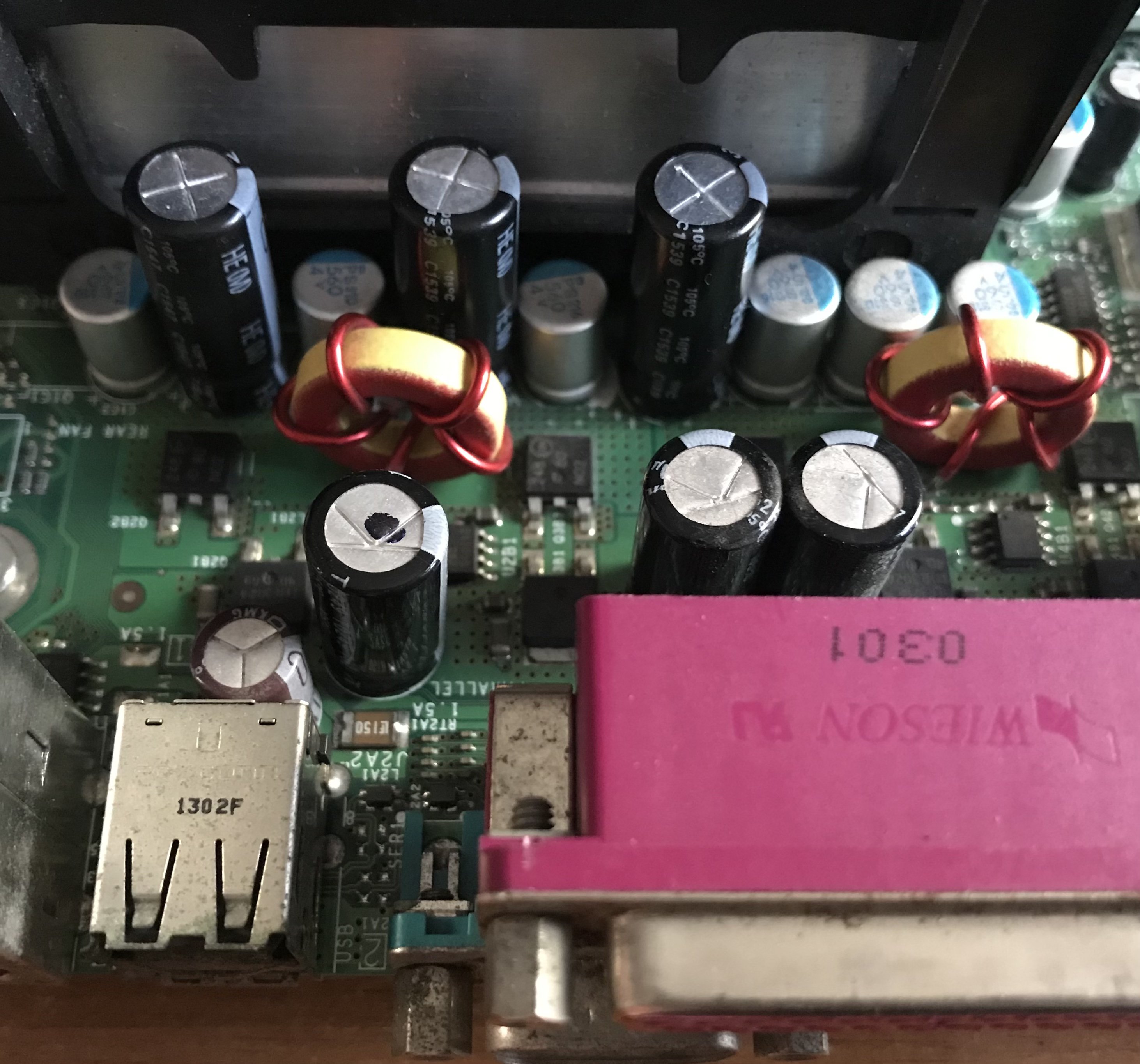 finirò con le saldature dei nuovi condensatori elettrolitici, potrò provare se questa scheda madre funziona, sarebbe bello