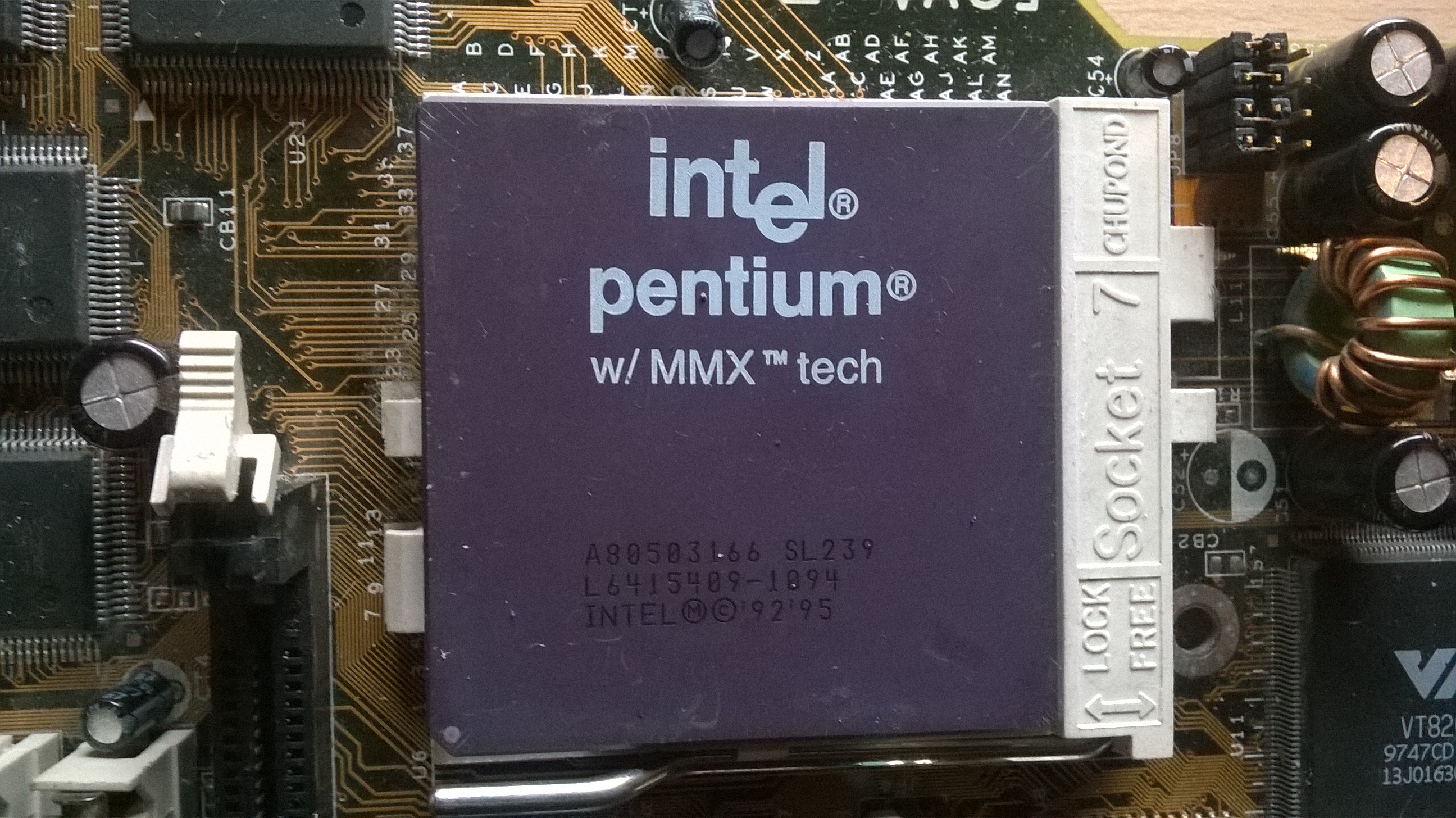 Il Pentium MMX 166 della prima foto è molto simile a quello che era montato sulla scheda madre Soyo del PC old in firma (dove adesso c'è l'AMD K6-166), ma questo è una revisione leggermente più vecchia (SL239) mentre il mio è appena più recente (SL27H) ed ha la parte superiore diversa: