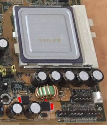 A proposito di SKT7 e di mod per il VCore e per il multi, metto alcune immagini, in una troviamo un sistema per misurare il VCore, in un'altra un più semplice sistema per misurare sui mosfet, e per ultimo un mod per il multi da 4X a 5.5X, collegando due pin del socket7.