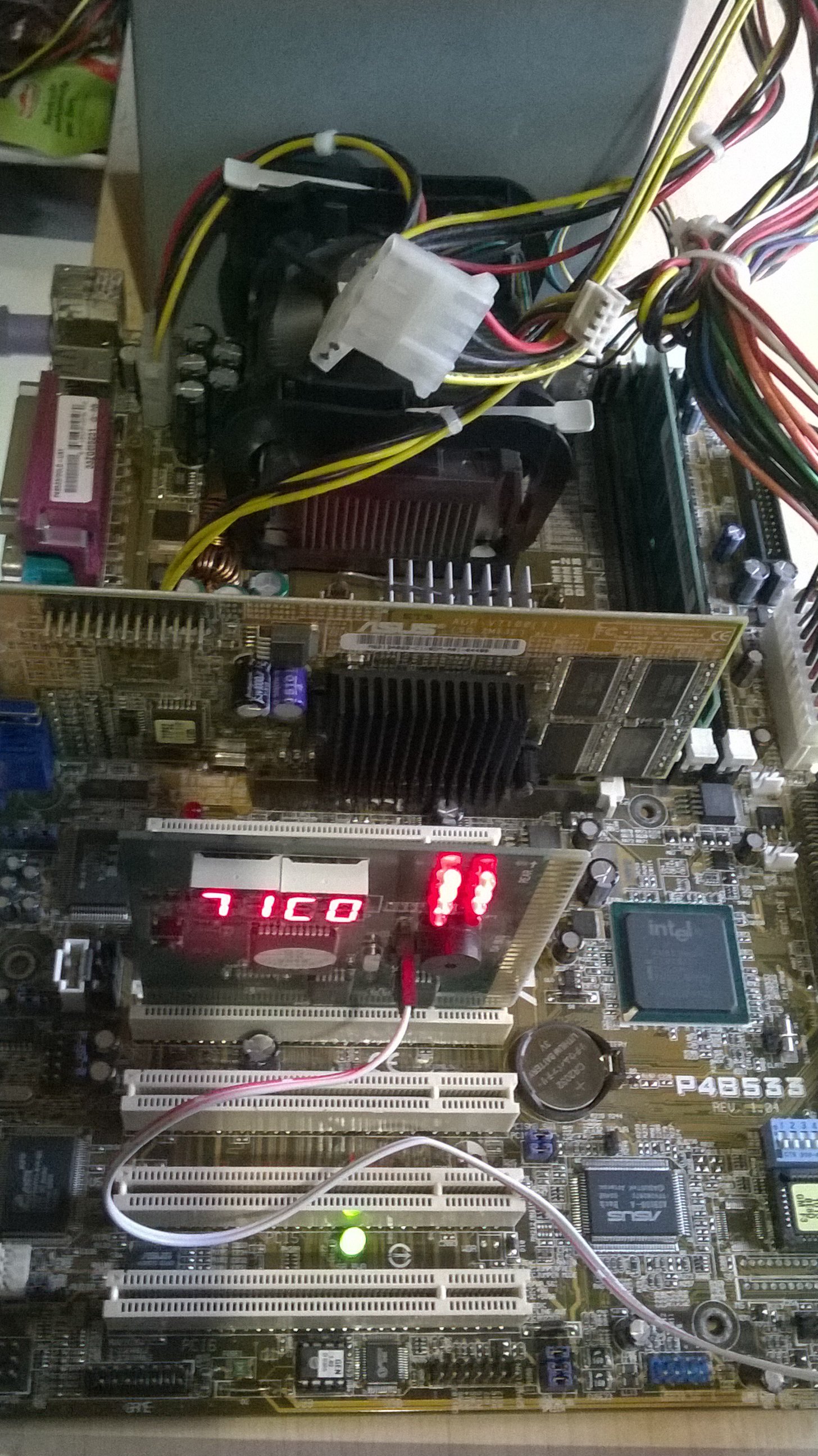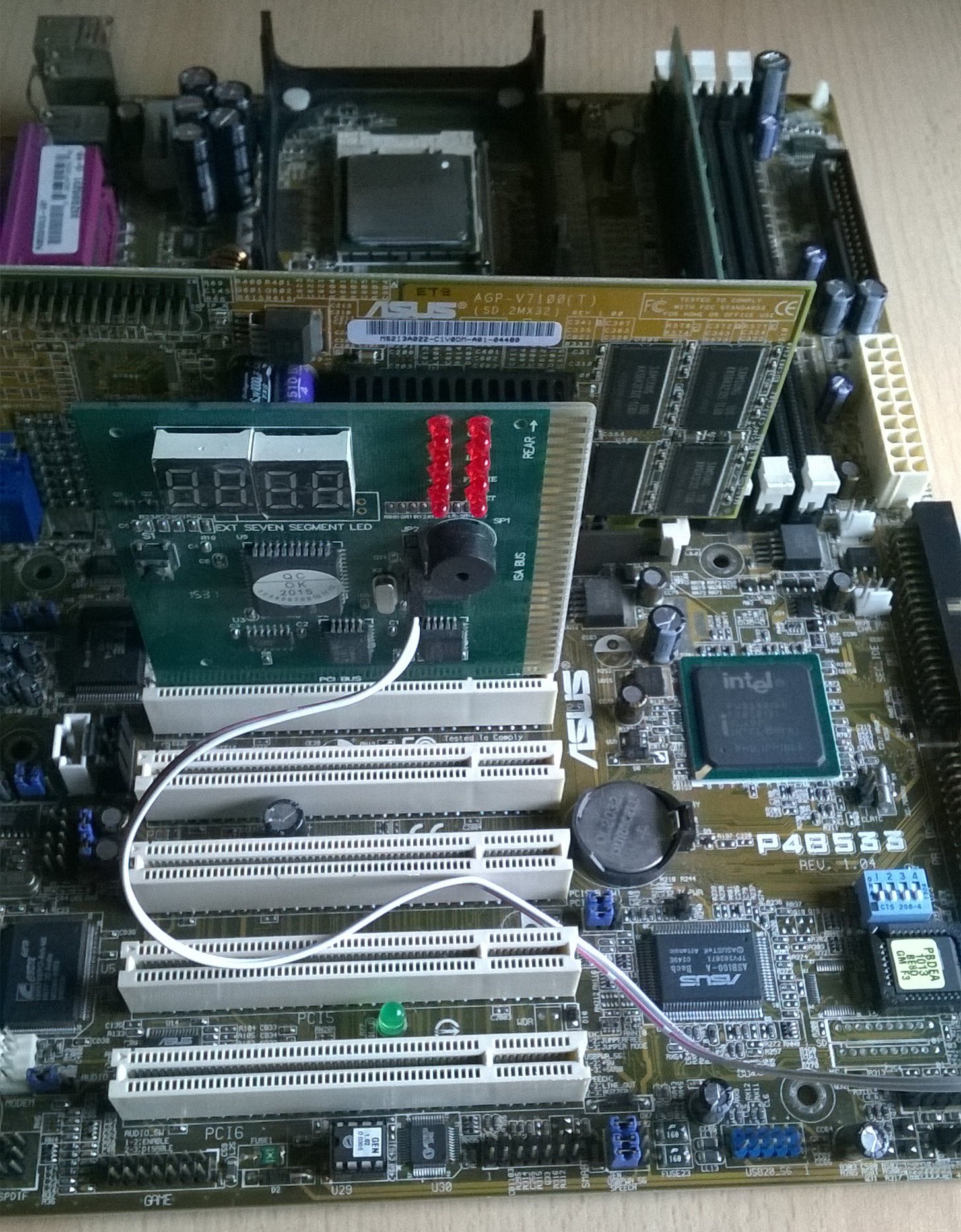 Sto verificando il funzionamento della ASUS P4B533, ho installato una VGA ASUS V7100(T) invece della Radeon 9200, e una RAM DDR da 256MB PC2100 (266MHz), come Cpu uso un P4 2667MHz (20X 133), il risultato è che si avvia il BIOS parte ed entra automaticamente in CPU Speed, forzando l'uscita con F10, il PC riparte ma si blocca senza bippare al post 71 C0 della post card e non visualizza nulla (schermo nero).