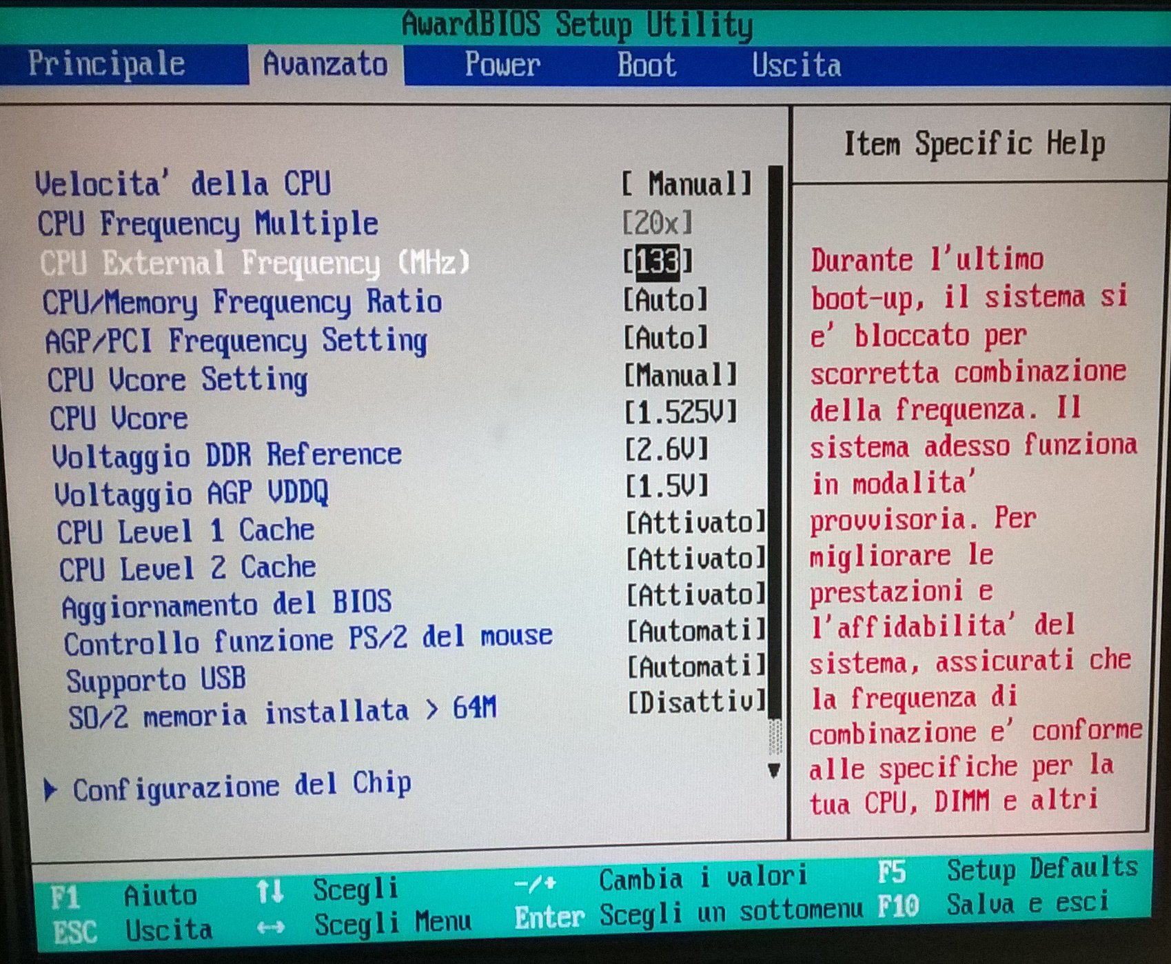 Sto cercando info utili al riguardo, ovviamente non so come mai impostando il valore corretto della CPU, il PC continui a rilevare un "improper CPU Speed setting."