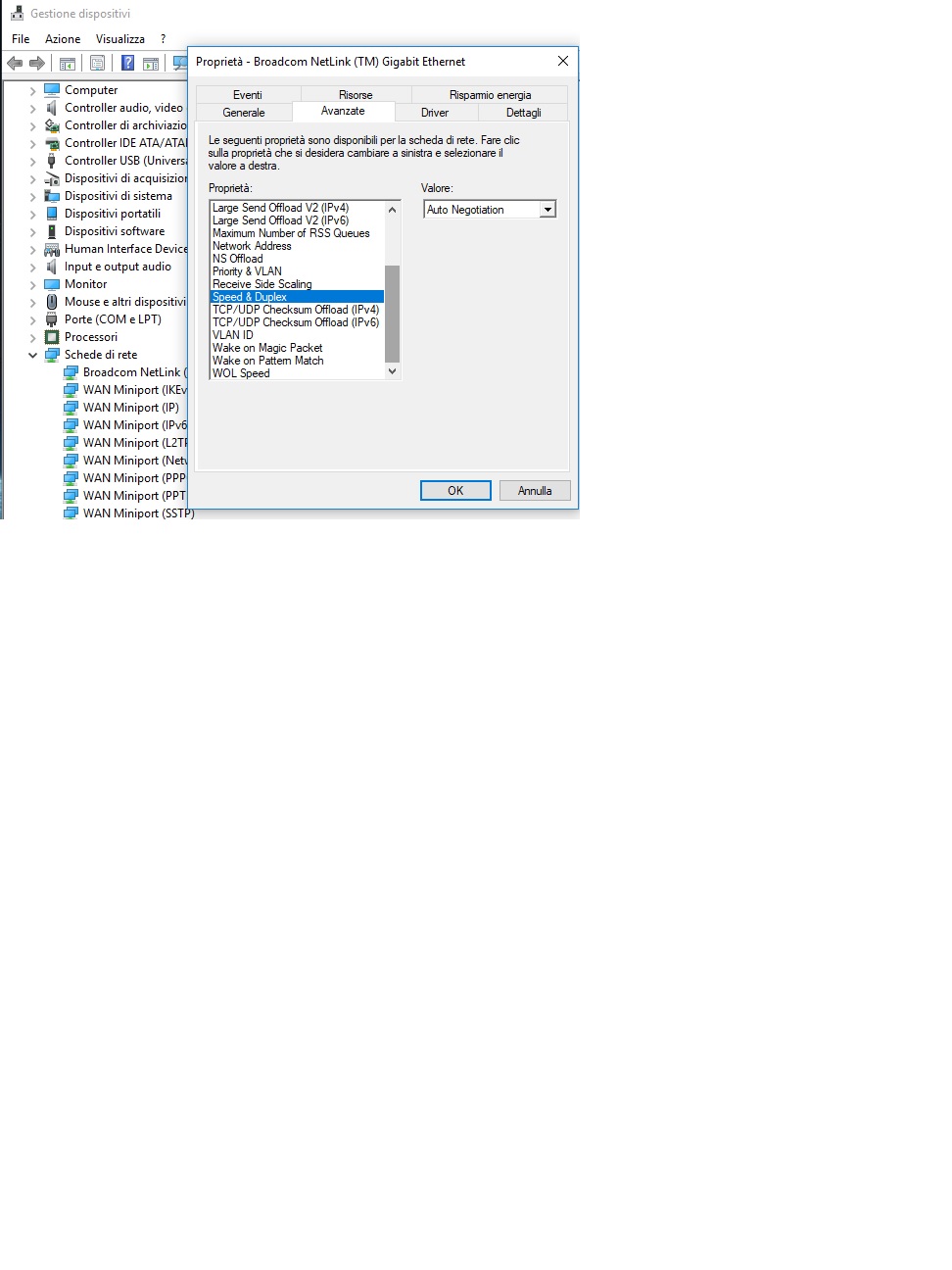 Se qualcuno potesse dirmi come configurare al meglio le opzioni avanzate potrei sperare di migliorare sta connessione sul fisso.. In speed/duplex ho lasciato autonegotiation perchè non ci sta l'opzione 1000. E cmq il led del connettore lan è verde cioè la connessione è in effetti a un giga e anche in centro connessioni di rete mi dice che la scheda viaggia a 1000mbps, ovviamente nominali. In jumbo mtu ho messo 9000, il massimo, pensando di avere così migliore ampiezza di pacchetti ricevuti.