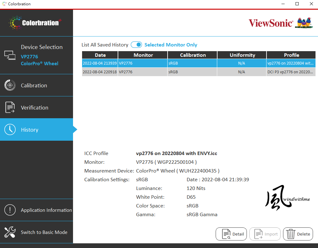 Every calibration report for the VP series details the panel’s DCI-P3, sRGB, REC709, and Uniformity values. Users can input their product serial number on the official ViewSonic website to download a bespoke color calibration report.The ColorPro calibrator comes with a protective cover and appears to have a single lens. Having used a Spyder for more than ten years, I have to say the ColorPro has a genuinely attractive appearance, and unlike other high-end calibrators, software supporting the ColorPro Wheel can immediately make use of its click and spin functionality.